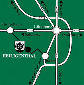 ... von den Autobahnen A 250 (aus Richtung Hamburg) oder A 7 (Abfahrt Soltau-Ost aus Hannover) liegt Heiligenthal eingebettet in Wiesen und Wäldern am Rande der 1000-jährigen Salzstadt Lüneburg (5 km vom Zentrum) und der Lüneburger Heide.